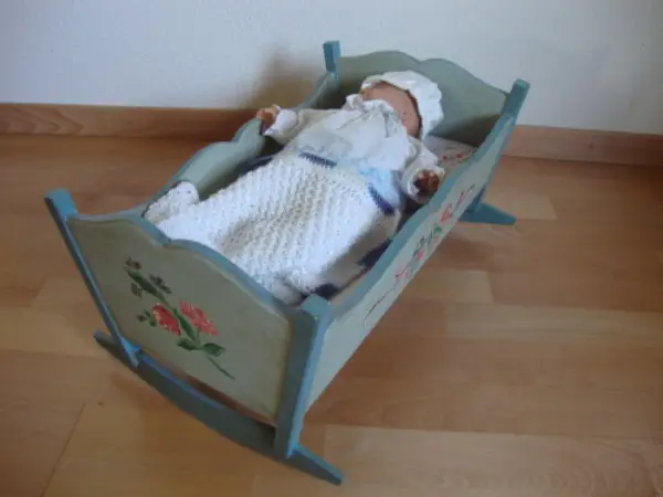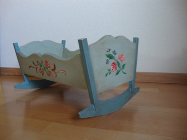 Handbemalte Puppenwiege