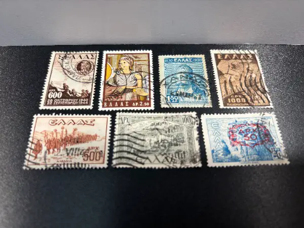 SET alte BRIEFMARKEN SONDERMARKEN aus GRIECHENLAND um die 1930 - 1950 er mit Sujet Soldaten WW 2 zweiter Weltkrieg Kloster Dorf Frau Göttin Landschaft König etc. // für Sammler von Sondermarken Philatelie Briefmarken Markenbogen Weltpost Sonderdruck Zeitzeugen Sonderbrief historischen Dokumente