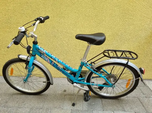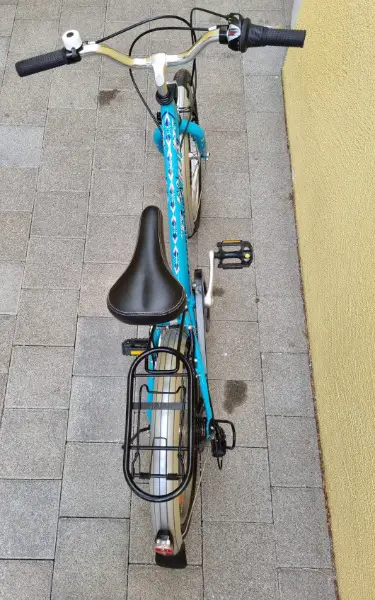 Mit Klingel, Schutzbleche, Gepäckträger und Licht.