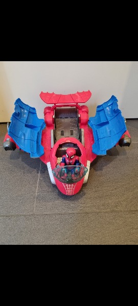 Toller Spiderman Jet, welcher sich oben komplett aufklappen lässt. Hinten kann die Laderampe ebenfalls geöffnet werden. Inkl. Spiderman Figur von ca. 12,5cm Grösse.