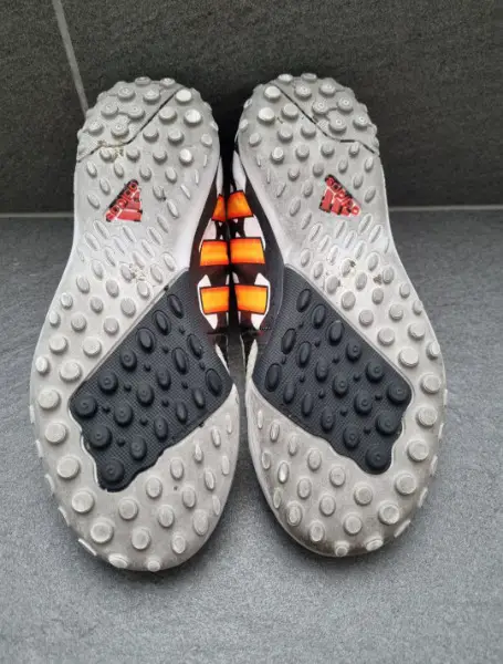 Fussballschuhe, die für Kunstrasen konzipiert sind, wie die adidas Predator Absolado LZ AG, verfügen über eine spezielle AG-Sohle mit kürzeren, runderen oder dreieckigen Stollen, die optimalen Halt bieten und gleichzeitig die Gelenke schonen.