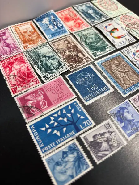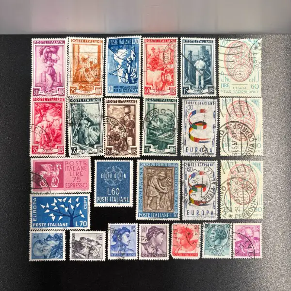 Grosses SET alte BRIEFMARKEN SONDERMARKEN aus Italien - Italy um die 1940 - 1960 mit Sujet Schiff Palast Schloss Burg Landschaft Mittelmeer Dorf Stadt City Natur