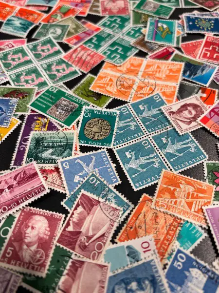 Helvetia um die ca. 1950 - 1990 u. a. auch alte ProJuventute ProPatria mit Sujet Schiff Ruderer Palast Feuerwehr Soldat Polizei Schloss Burg Landschaft Zug Insekt Käfer Schmetterling Eisenbahn Stadt City Stausee Kraftwerk