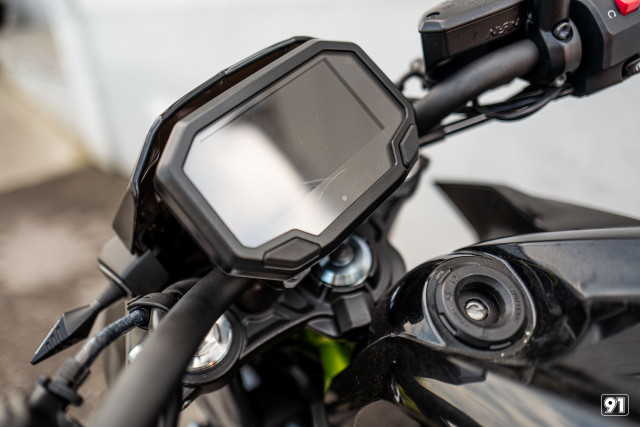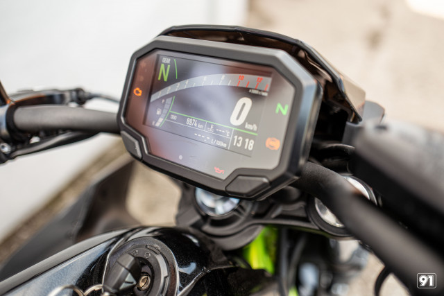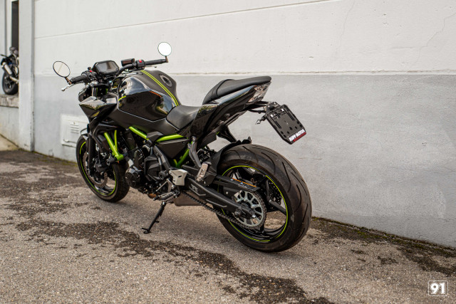 Unsere Occasion im kalsischen schwarz mit den grünen Kawasaki Akzenten kommt frisch ab Service und MFK. Neue Reifen sind auch montiert.