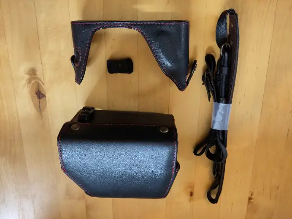Lederhülle und Tragriemen für die Fuji X100T.