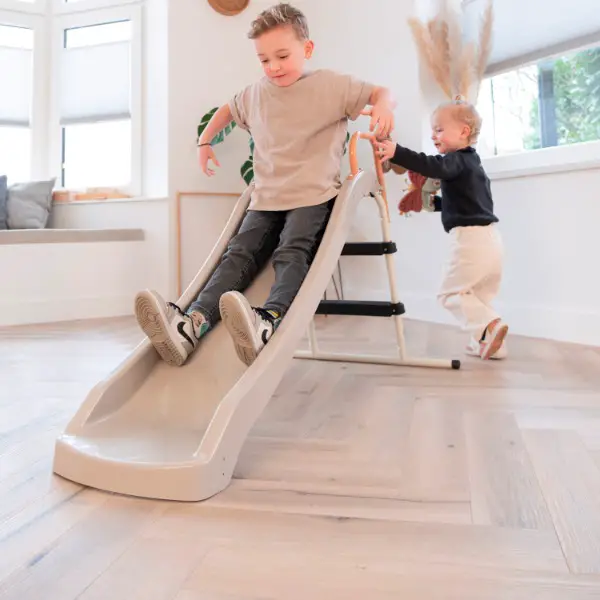 Die EXIT My First Slide ist eine echte Kleinkinder-Rutsche. Dank ihrer kompakten Grösse kann diese Rutsche sowohl im Freien als auch in Innenräumen verwendet werden. So hat dein Kind das ganze Jahr über Spass in seiner gewohnten Umgebung. Das moderne Design mit sanften Farbtönen gibt dieser Rutsche ein stilvolles Erscheinungsbild in Haus und Garten.