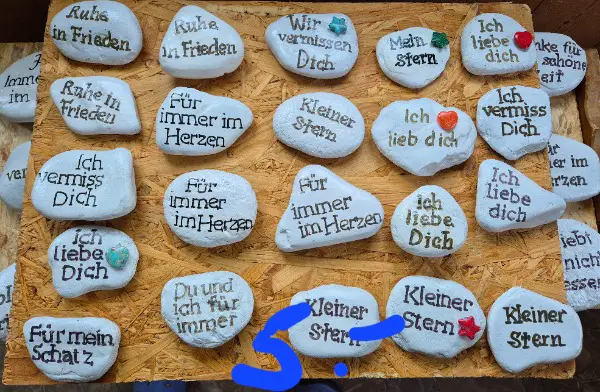 Sehr schöne Trauer Steine, sind mit liebe gemachtvund mit uv Lack behandelt das sie schön bleiben .Ich schicke nur in der schweiz auf porto oder abholen