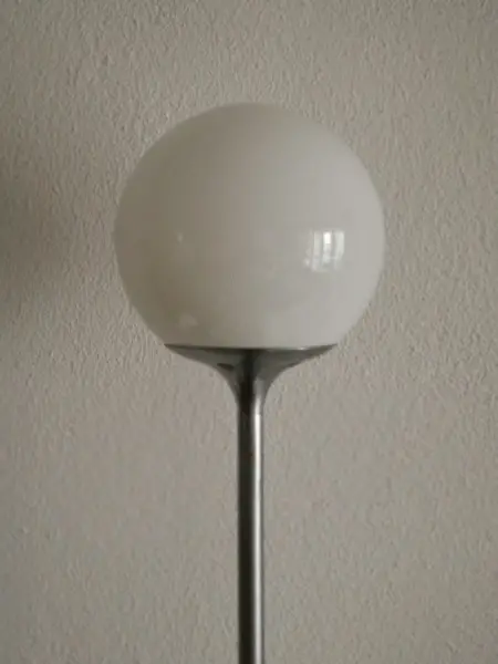 Höhe vom Metall-Teil: min. 79 cm / voll ausgezogen 152 cm / plus Glaskugel d=25 cm. Also variable Höhe um +/- 73 cm von Hand anpassbar.