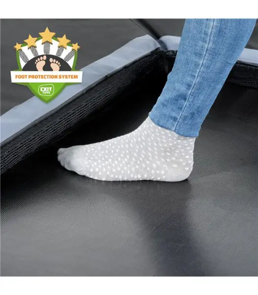 EXIT PeakPro Trampolins sind nicht weniger als 25 Zentimeter lang und ermöglichen ein einfaches Springen in grosse Höhen. Das serienmässige Sicherheitsnetz ist mit einem Sprungmesser ausgestattet, so dass jeder sehen kann, wie hoch du springen kannst. Der Trampolinrahmen ist galvanisiert und pulverbeschichtet, um Rost zu vermeiden. Ausserdem sind die Füssen und das Oberrohr sehr stabil, so dass das Trampolin bei den wildesten Sprüngen an seinem Platz bleibt. Das hochwertige Sicherheitsnetz des PeakPro und den robusten Schutzrand schützen dich im Falle eines Fehlsprungs. Und das spezielle Fussschutzsystem sorgt dafür, dass du beim Springen nicht mit den Füssen zwischen die Federn gerätst.