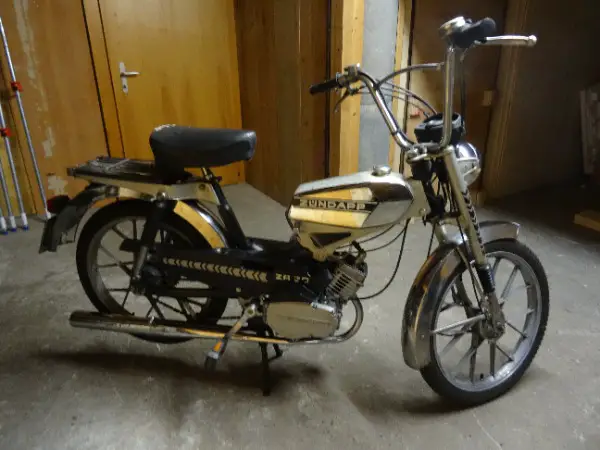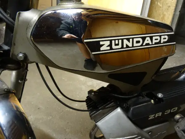 Original unfriesiertes und unverbasteltes mit schöner Patina ZÜNDAPP ZR30. Motor dreht, Pneus Ketten und Getriebeoel ersetzt. Benzintank Beulenfrei, innen etwas Flugrost. Eine Beule oben im rechten Gabelholm. Federelemente und Bremsen funktionieren. Ausweis und Zündschloss fehlt. Sattel sollte ersetzt werden. Keine Garantie und Rücknahme da Privatverkauf. Kann geliefert werden.