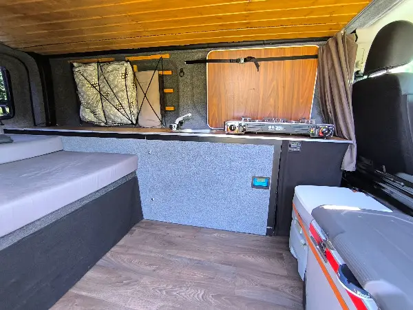 Der Van ist ausgebaut und bietet alles, was man für entspannte Reisen (1-2 Personen) braucht: