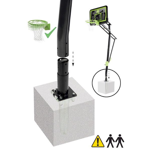 Dieser Basketballkorb wird im Boden verankert, dadurch kannst du den Basketballkorb nach der Montage nicht mehr versetzen. Der Basketballkorb kann in fünf verschiedenen Ständen eingestellt werden (230 - 245 - 260 - 285 - 305 cm) und der höchste Stand wird für Senioren-Basketballwettkämpfe benutzt. Die Basketballsysteme von EXIT Toys sind robust und für eine lange Lebensdauer aus hochwertigen Materialien hergestellt. Trainiere deine Basketballfähigkeiten mit den EXIT Galaxy Basketballsystemen!