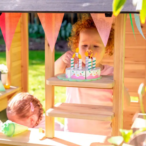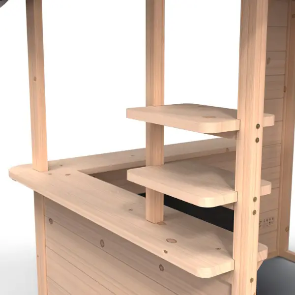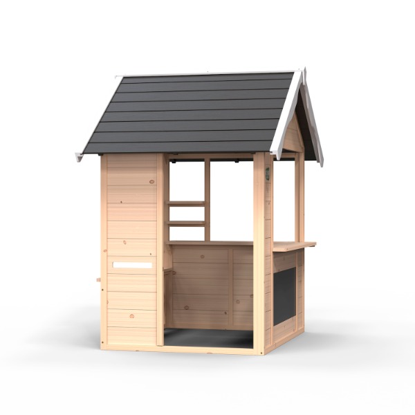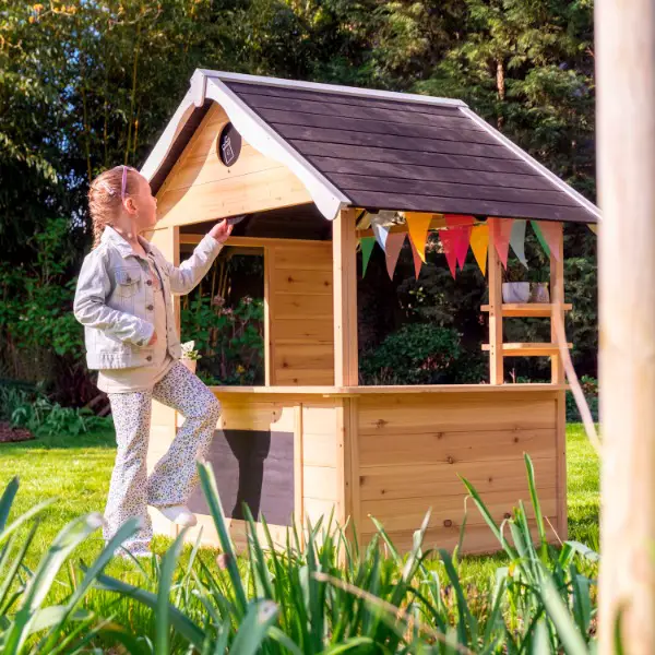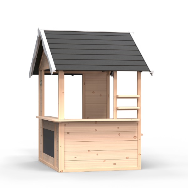 Das kompakte Spielhaus für draussen in attraktivem und zeitlosem Design passt in jeden Garten. Die einzelnen Elemente wie Theke,