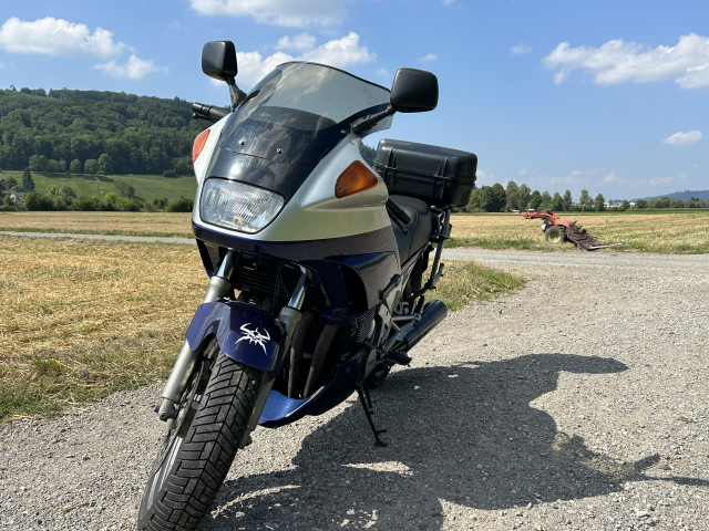 Zwei Top - Cases gehören dazu. Können auch seitlich montiert werden. (Bei einem ist die Schlüsselabdeckung weggebrochen, funktioniert aber trotzdem einwandfrei...eher kosmetisch weniger schön.)