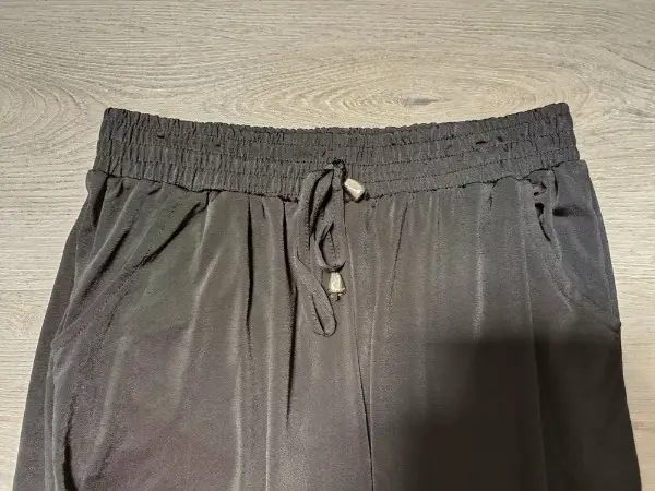 Mit Gummizug und Bändel, 2 Taschen.