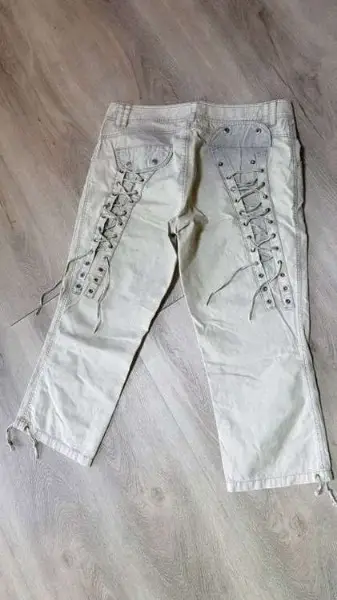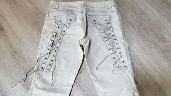 Sommerhose mit Gurt. Hinten mit Oesen und Bändel.
