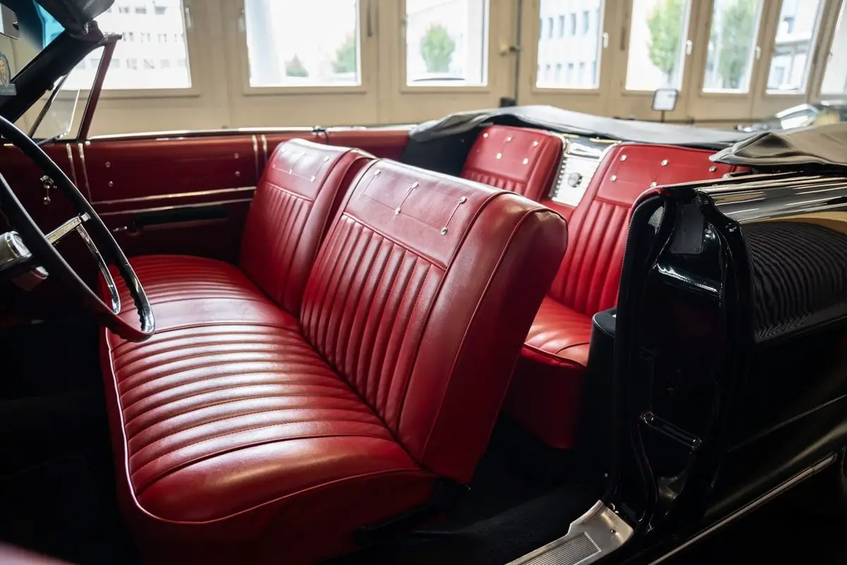 Kunstleder in Rot, passend zum schwarzen Aussenkleid: einfach eine Sünde wert! Super Substanz und schöner Zustand sowie frisch ab Veteranen-MFK - was will man mehr!
