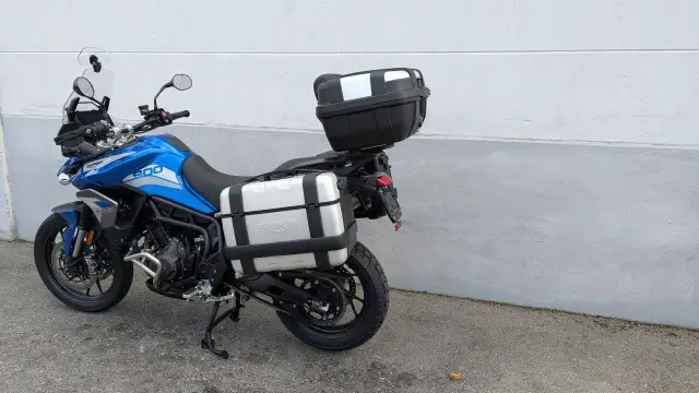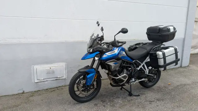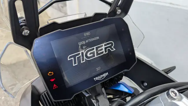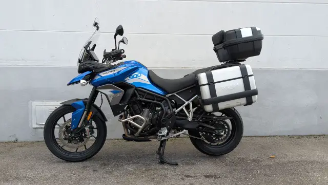 Die Tiger ist Serienmässig schon mit allem Zubehör dass man sich nur wünscht ausgestattet worden. Ergänzt wurde die Ausstattung noch mit einem Triumph Trekker Koffer – Set mit zwei Seitenkoffer und einem grossen Top Case für 2 Helme!