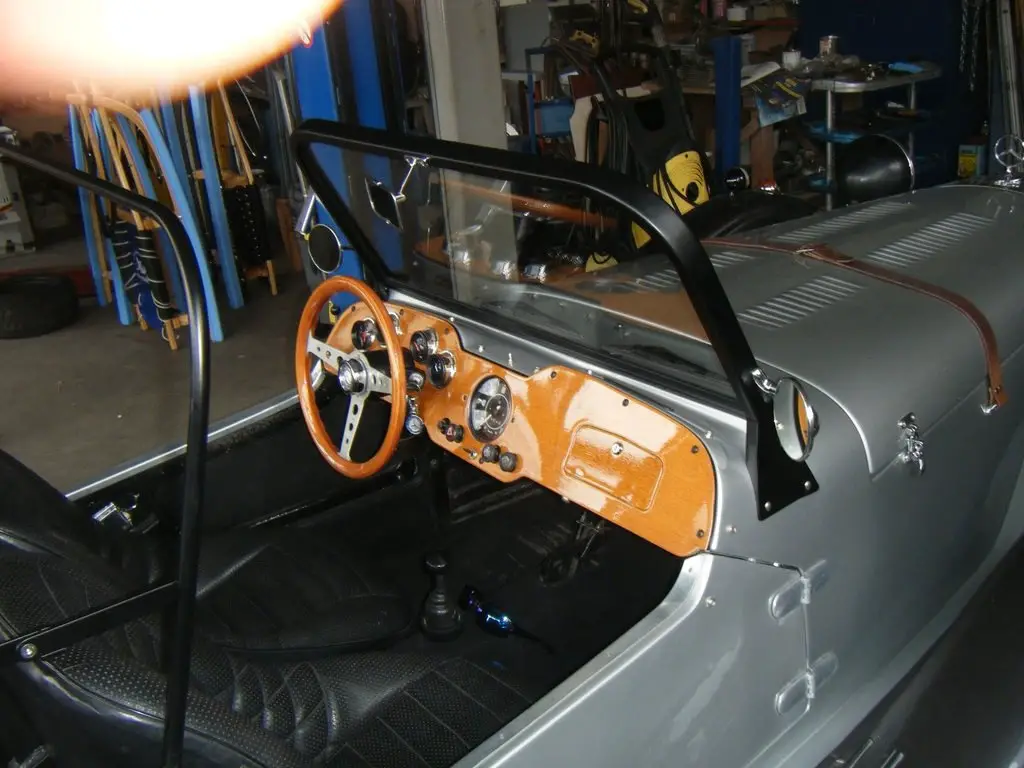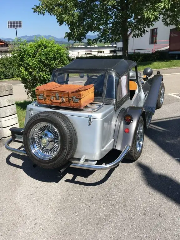 Verkaufe schweren Herzens diese Replika. Das Fahrwerk von einem VW Käfer mit Motor & Getribe, wurde zwischen 1975 - 1985 umgebaut. Veteranenfahrzeug sowie Speichenfelgen sind eingetragen. Zwei Verdecke sind vorhanden eins um offen zu Fahren mit abgedektem Beifahrersitz. Motor wurde neu überholt (Kolben-Zylinder-Bleifrei Zylinderköpfe-Vergaser sind neu) Auch eine verstärckte Oelpumpe mit Oelfilter wurde verbaut. Dem Motorraum wurde durch unterflurkanäle mehr frischluft zugeführt. Vorn neue Bremstrommeln. Preis: Verhandelbar.