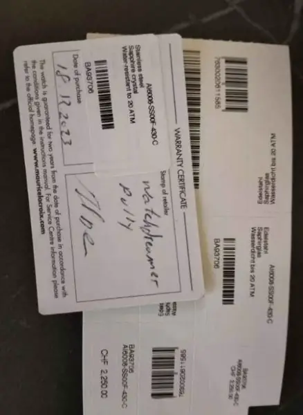 Dabei ist die Box, das Zertifikat sowie das Standardmässige Alternative Armband.