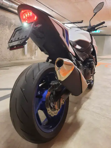 Les photos affichent la moto avec les clignotants au LED et support de plaque court qui sont toujours disponibles et qui sont vendu avec la moto: actuellement la moto a les pièces d'origine installées.