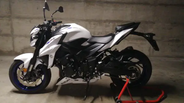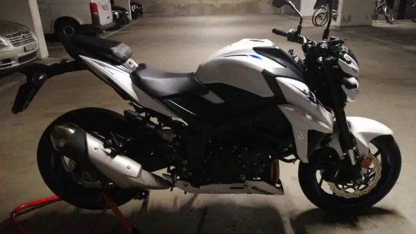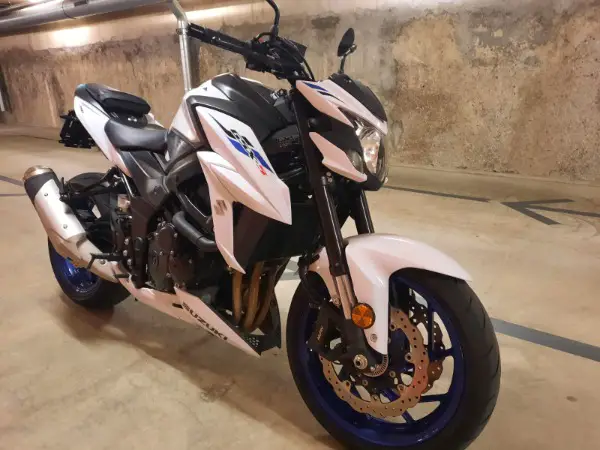 Suzuki GSX-S 750 ABS mise en route en août 2020, en excellent état, blanc et bleu.