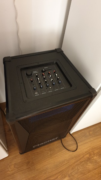 Musik hören.Mit Akkubetrieb. Der Lautsprecher ist gebraucht, funktioniert aber einwandfrei und hat einen super Klang.