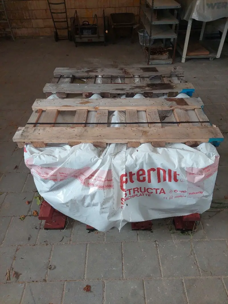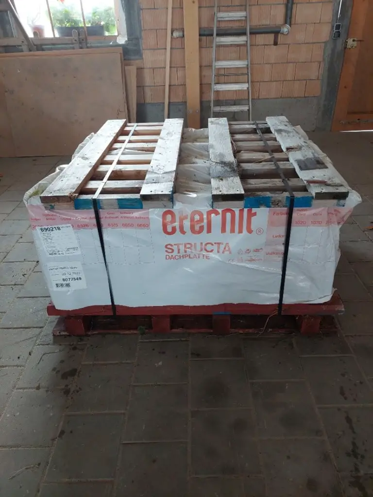 - 1x angefangenes Palett: 64 Platten (ca. 32 m2)