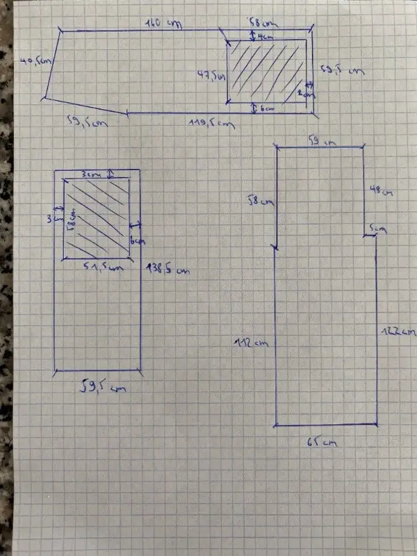 (Stärke 4cm) in gutem Zustand. Für Grobmasse siehe separate Skizze.