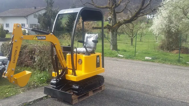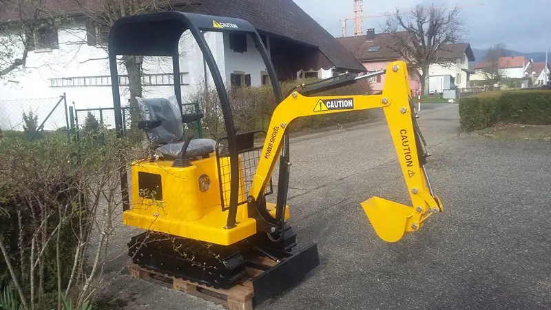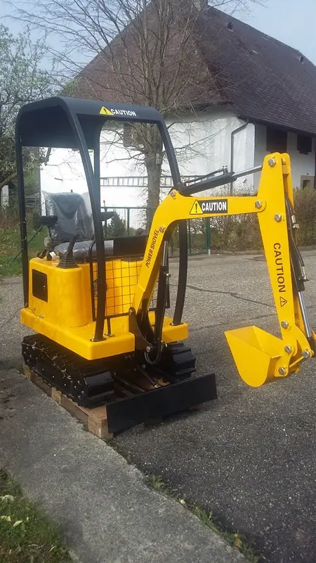 massiv gebaut aus Stahl / GFK (Polyester) , 220Volt, vollhydraulisch, nicht fahrbar, jedoch schwenkbar 180 - 360 Grad, Joystick- Bedienung wie bei einem richtigen Bagger... Sitz mit Armlehnen und Sicherheitsgurt