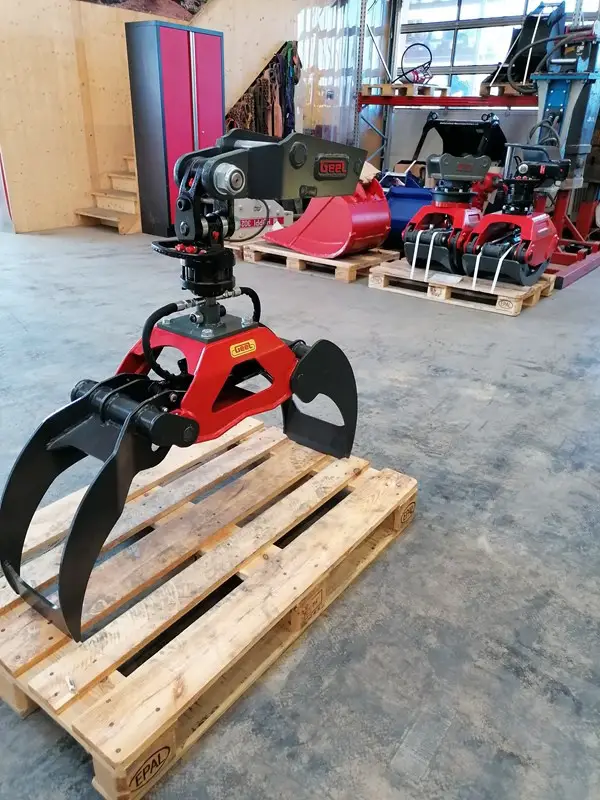 Geel Holzgreifer mit Pendelrotator und Pendelgelenk für den Profi Einsatz.