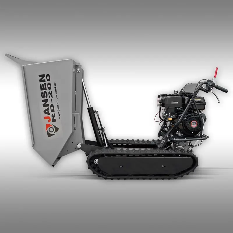 Kettenantrieb ist dieser Dumper für besonders unwegsames Gelände geeignet. Auch Steigungen können mühelos bewältigt werden.