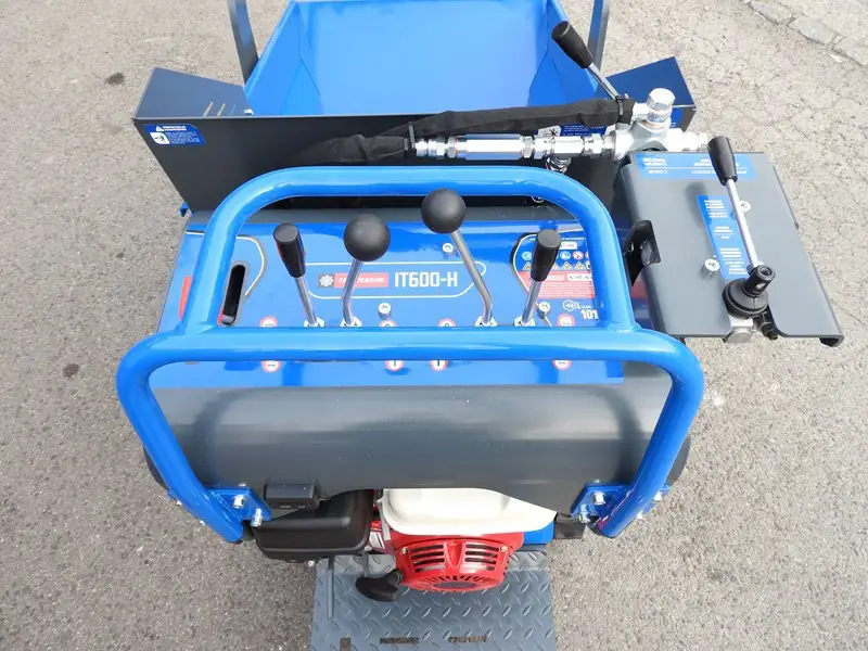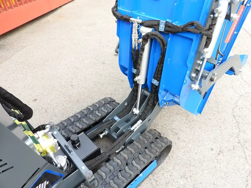 - Hydraulische Selbstladeschaufel mit doppelt wirkenden Hydraulikkolben, Gewicht 85 kg, die zum Maschinengewicht hinzuzurechnen sind (insgesamt 495 kg)