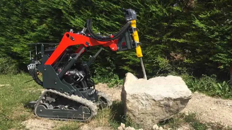 Largeur 75 cm, hauteur de levage 200 cm, longueur sans godet 129 cm, poids env. 700 kg, moteur Vanguard 2 cylindres essence de 18 CV, 3 pompes hydrauliques 15+15+30L/min, changement rapide des outils avec une très grande gamme de produits;