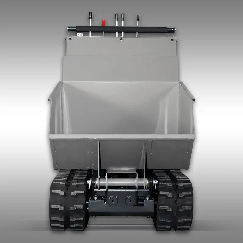 Kettenantrieb ist dieser Dumper für besonders unwegsames Gelände geeignet. Steigungen sind - abhängig von der Zuladung - auch möglich.