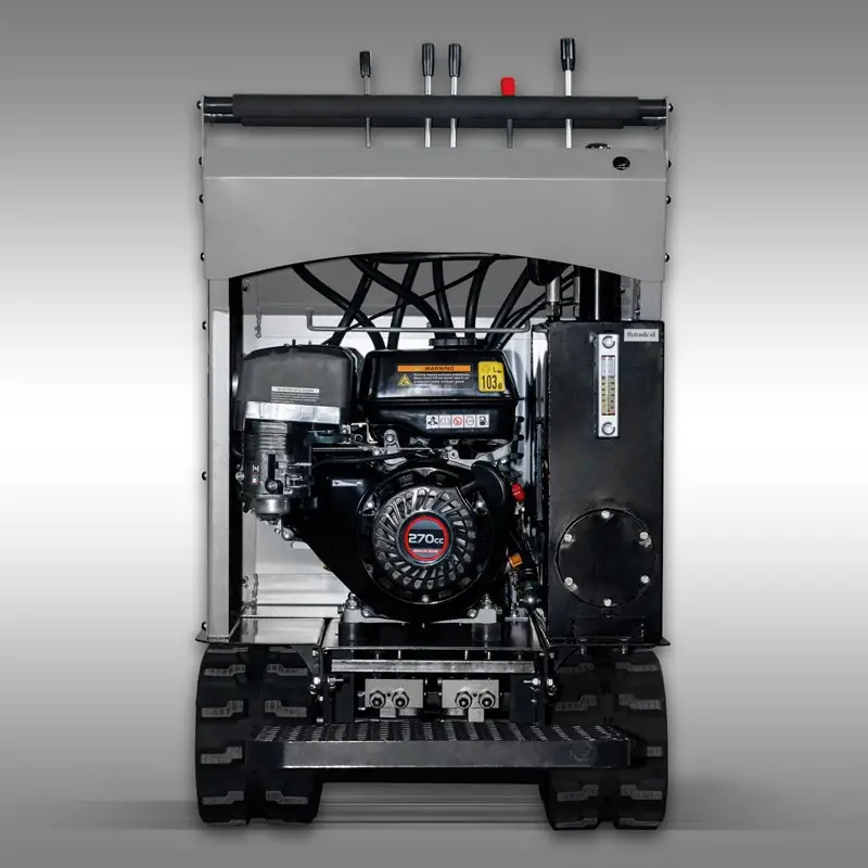 Der Kettendumper ist selbstfahrend und die Mulde kann gekippt werden. Hierzu ist ein Hydraulikaggregat und ein Hydraulikzylinder auf der