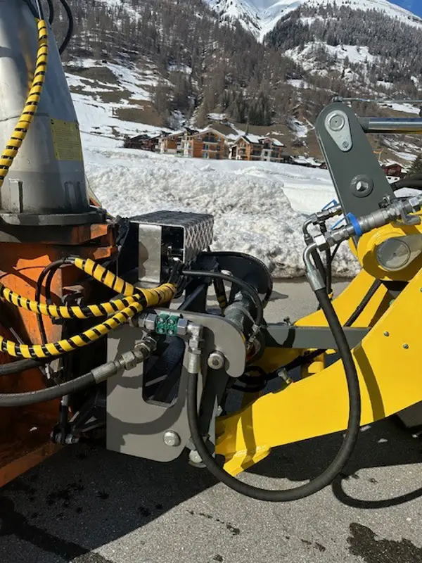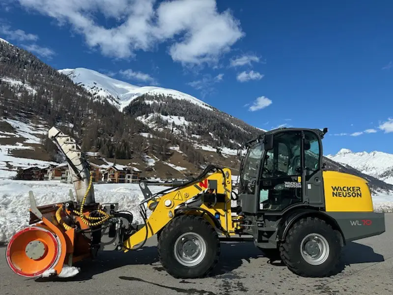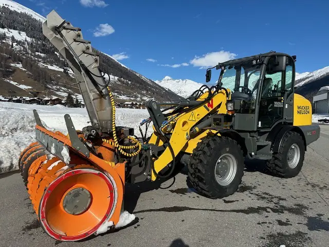 Radlader mit Spezialumbau fürs Schneefräsen.