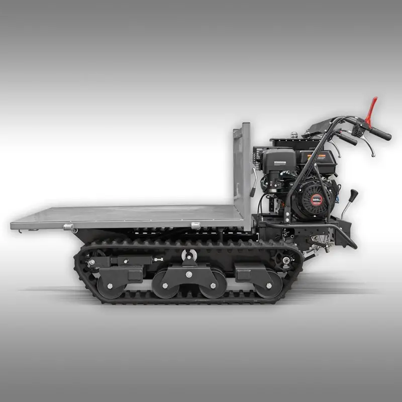 Die Handhabung ist aufgrund der intuitiven und gut erreichbaren Steuerung besonders leicht und komfortabel. Auch das klappbare Trittbrett erweist sich auf längeren Distanzen als äusserst hilfreich und komfortabel. Der Raupendumper Jansen RD-800 verfügt über einen starken Benzinmotor von LonCin mit 15PS, welcher per Seilzugstarter angelassen werden kann.