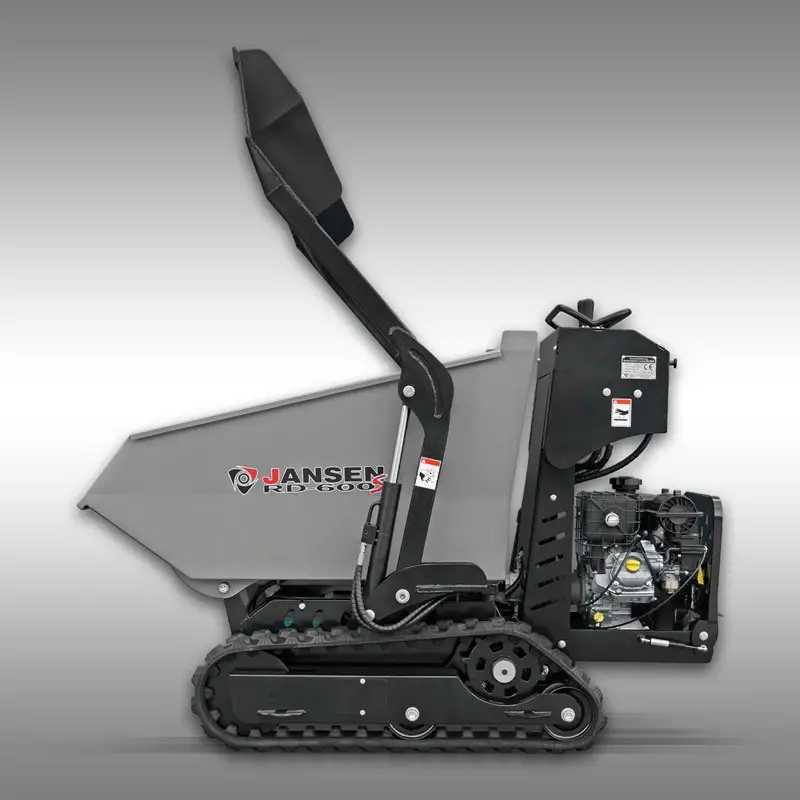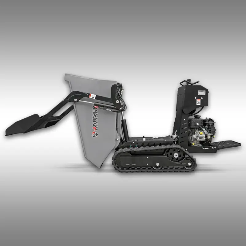 Baumaterialien auf der Baustelle transportieren oder Erde und Kies bewegen müssen, unser Raupendumper Jansen® RD-600S mit hydrostatischem Antrieb und hydraulischer Selbstladeschaufel ist Ihr zuverlässiger Partner für effiziente und erfolgreiche Projektdurchführung. Steigern Sie Ihre Produktivität und minimieren Sie den Arbeitsaufwand mit diesem leistungsstarken Arbeitsgerät.