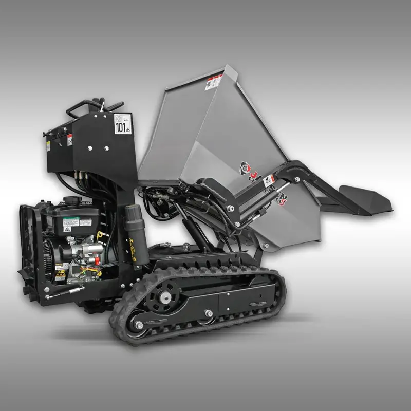 Der hydrostatische Antrieb gewährleistet präzise und stufenlose Geschwindigkeitsregelung, sodass Sie sich mühelos durch anspruchsvolles Terrain bewegen können. Dank der Raupenketten bietet der Dumper hervorragende Traktion und Stabilität auf unterschiedlichen Untergründen, von schlammigen Baustellen bis hin zu Steigungen und Hängen.