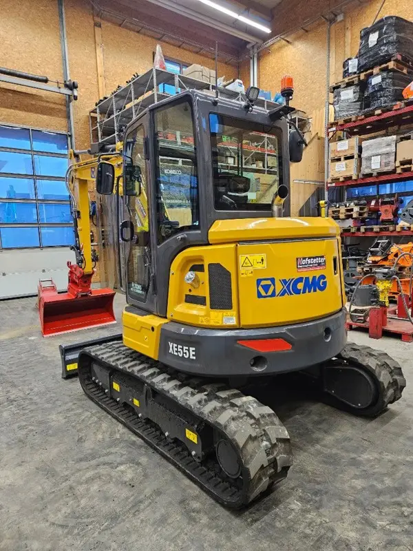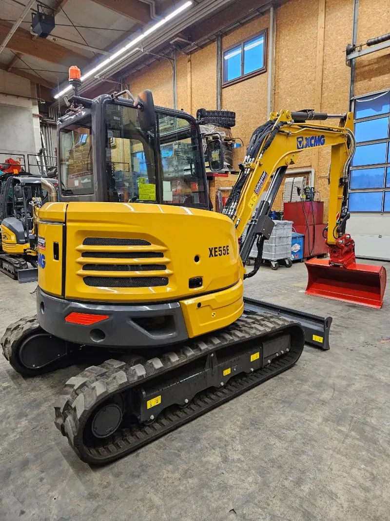 Dieser XCMG Minibagger Typ - XE55E mit einem Einsatzgewicht von 5700kg ist ausgestattet mit einem sparsamen Kubota Diesel Motor, Load-Sensing Hydraulikanlage, sanfte Hydrauliksteurung, Proportionalsteuerventile, einstellbare Oelmenge auf AUX 1 und AUX 2 (wählbare Anbaugeräte) , Gates Hydraulikschläuche mit metrischen Verschraubungen, LED-Arbeitsbeleuchtung vorne + hinten, Kabine mit Radio, Heizung, Lüftung und Klimaaanlage, grosses, robustes Fahrwerk, Buchsen in Laschen des Auslegers und Schwenksupport, grosser Drehkranz, etc..
