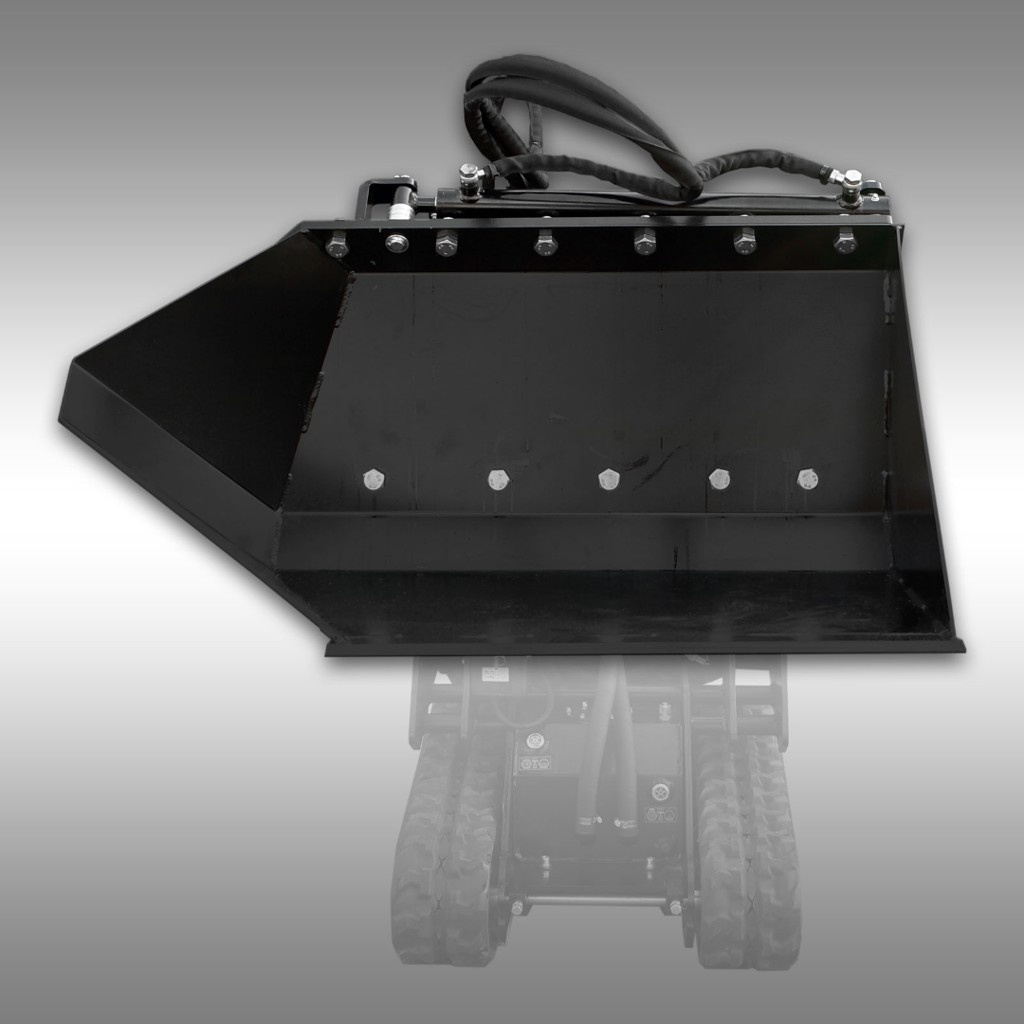 Kompaktlader Jansen® KL-200 mit hydraulischer 130 Liter Seitenkippschaufel an.