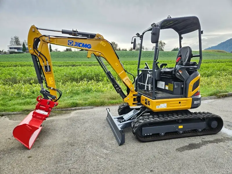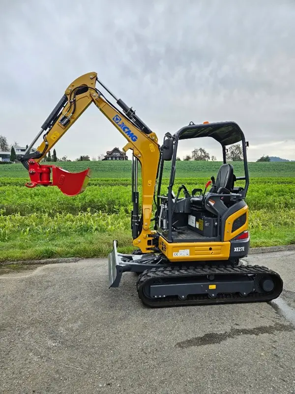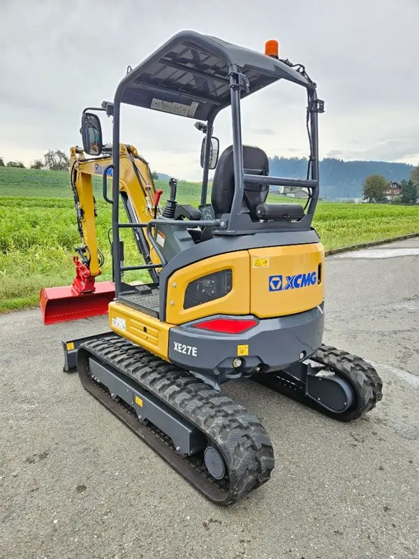 Dieser XCMG Minibagger Typ - XE27E Canopy mit einem Einsatzgewicht von 2680kg ist ausgestattet mit einem sparsamen Kubota Diesel Motor, Load-Sensing Hydraulikanlage, sanfte Hydrauliksteurung, Proportionalsteuerventile, einstellbare Oelmenge auf AUX 1 und AUX 2, Gates Hydraulikschläuche mit metrischen Verschraubungen, LED-Arbeitsbeleuchtung, grosses, robustes Fahrwerk, Buchsen in Laschen des Auslegers und Schwenksupport, grosser Drehkranz, etc..