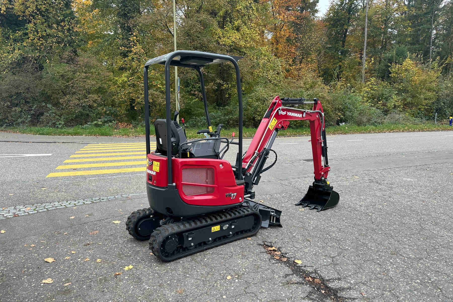 Preis-Information: Fabrikneuer YANMAR Minibagger in rot mit Monoblockausleger, Schutzdach, Verstellfahrwerk und mechanischem Schnellwechsler sowie Löffelsatz.