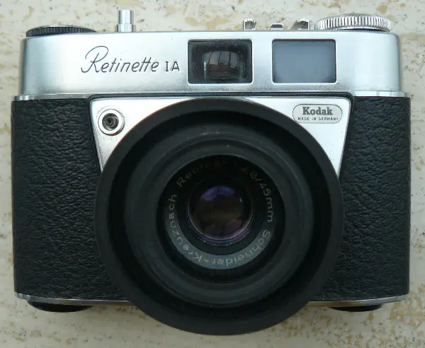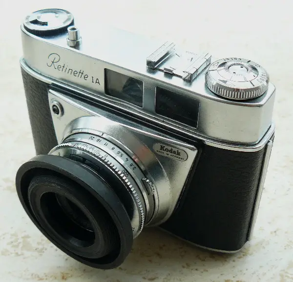 Gebrauchte, analoge Kodak Retinette 1A mit Sonnenblende, inklusive originaler