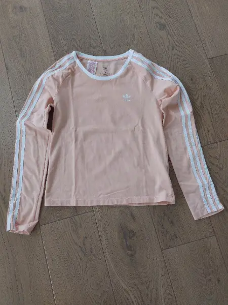 Pfirsichfarbener Adidas Originals Pullover mit weissen Streifen