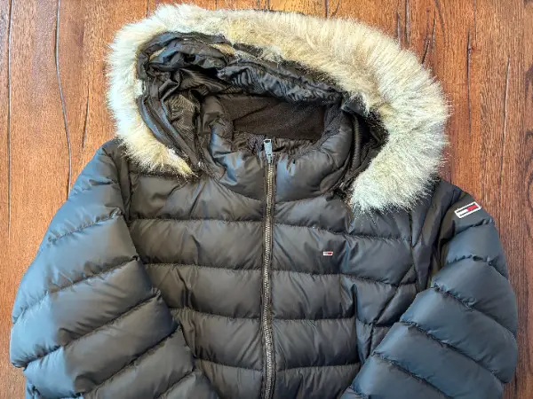 TOMMY HILFIGER - USA - Amerika - America // für ein edles funktionales wie exklusives Outfit für die stilvolle Dame mit Stil, Geschmack und Anspruch an elegante QUALITÄTS- Kleidung // Wurde nur ca. 6-8x getragen und meiner Einschätzung nach in einem TOP-ZUSTAND ausser minimer kaum sichtbarem kleinen Kratzer an der Kapuze // Material aussen und innen Synthetik in der Farbe schwarz, Fell (Imitat! ) an der Kapuze kann entfernt werden // Grösse XXXL - aber wohl eher klein geschnitten (ich bin ca. 171cm gross und passt in der Länge perfekt) , Umfang unten an der Hüfte ca. 150cm, Länge von Hüftsaum unten zu oberhalb Kragen ca. 78cm // Toller Style für den Frühling Winter Herbst