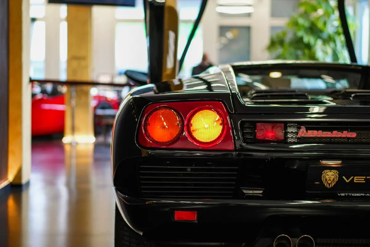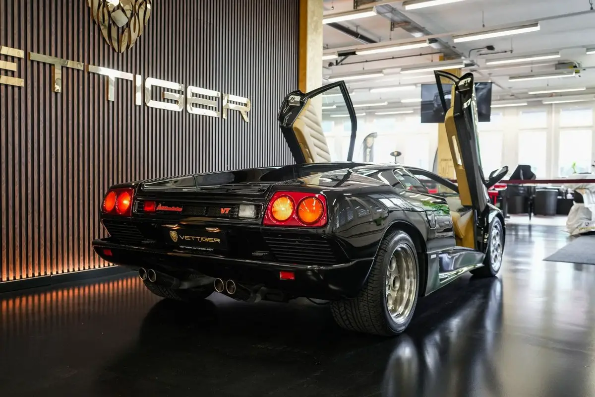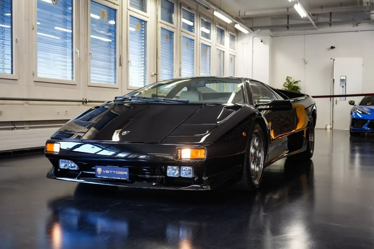 CH-Fahrzeug, ab Service & MFK, Fahrzeug und Kilometer absolut original, einmalig in der Schweiz! Ideal für Sammlung! Wer da nicht überlegt, den Wagen in seine Sammlung zu integrieren, ist selber Schuld! Dies ist sicherlich einmalig in der Schweiz, zumal in dieser Farbkombination, Zustand und Authentizität! Lassen Sie sich verzaubern von diesem atemberaubenden Fahrzeug - nur solange er noch zu haben ist! Der Wagen wurde am 05.07.1993 an einen autorisierten Händler ausgeliefert und dieser behielt das Fahrzeug bis 2001. Ein renommierter Sammler kaufte das Fahrzeug 2001 und der Diablo wurde exakt am 22.06.2001 auf den Arzt eingelöst. Dieser integrierte den Wagen in seiner grossen Sammlung und fuhr ihn extrem selten und insofern ist auch die Laufleistung nachvollziehbar und authentisch. 2023 wurde ein vollumfänglicher Service bei Lamborghini ausgeführt (also vor ca. 300 km! ). Servicebuch, originale Bestätigungen sowohl von Lamborghini selber als auch vom Erstbesitzer, unterstreichen die lückenlose Historie dieses aussergewöhnlichen Fahrzeugs. Dies ist der erste Lamborghini, der als Sportwagenmodell einen Allradantrieb bekam (Stückzahl ca. 400 Stück! !! ). Nagelneue Reifen sind am Wagen selbstverständlich montiert worden und die neuwertigen Originalpneus (tatsächlich vorhanden! !) ab Werk, werden dem neuen und glücklichen Eigner selbstverständlich mitgegeben, als zusätzlichen Garanten für die Originalität und Authentizität dieses wundervollen 90er-Jahre-Super-Sportwagens! !