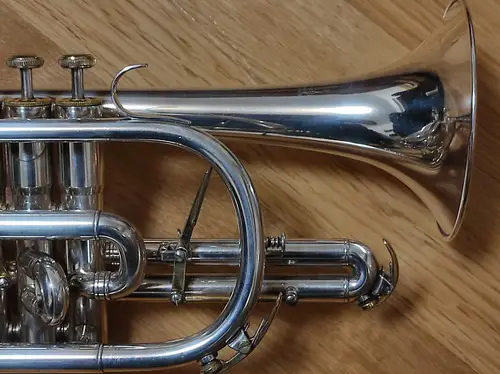Das Kornett befindet sich optisch in einem guten Zustand mit kleineren Gebrauchsspuren, technisch ist es auch in Ordnung.