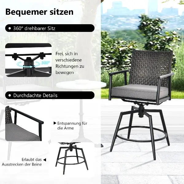 Insgesamt eignet sich das Terrassen-Bistro-Set perfekt für Ihre Freizeit im Freien mit Freunden oder Familie. Es kann gut im Garten, auf dem